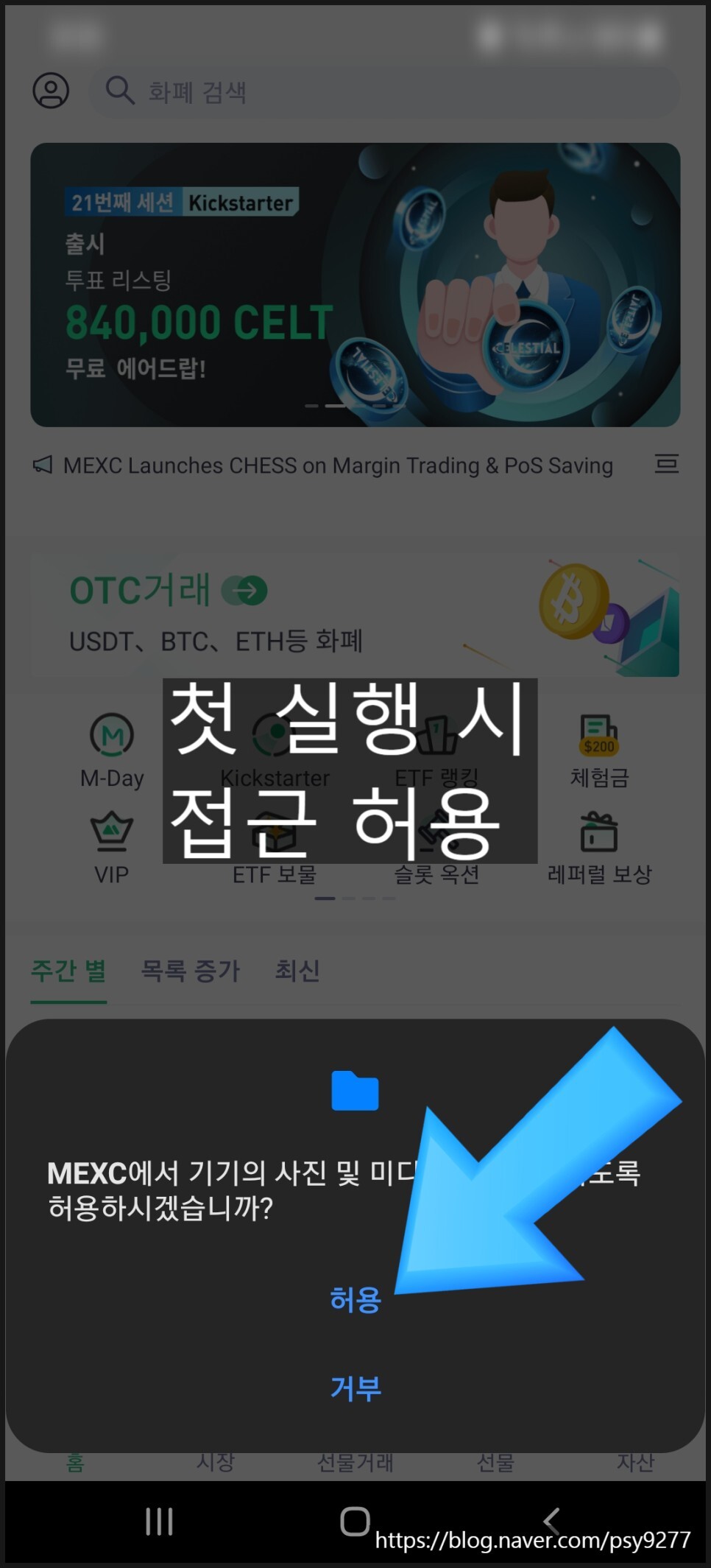 스토어에서 mexc를 검색하여 다운로드 및 설치 후 앱을 실행해 주세요.