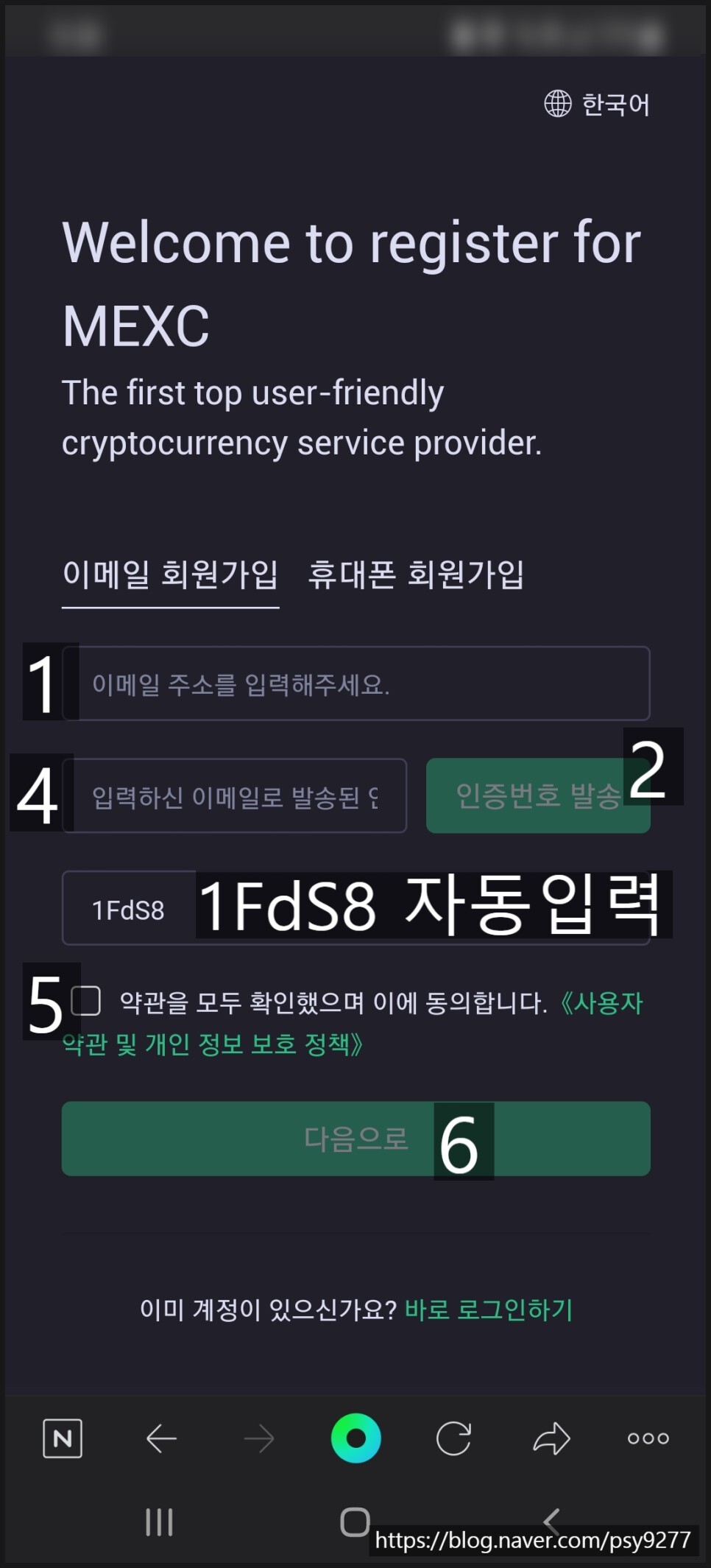 위와 같이 비밀번호 설정 화면이 나오면 원하는 비밀번호를 입력하면 mexc 거래소 회원가입이 완료됩니다.